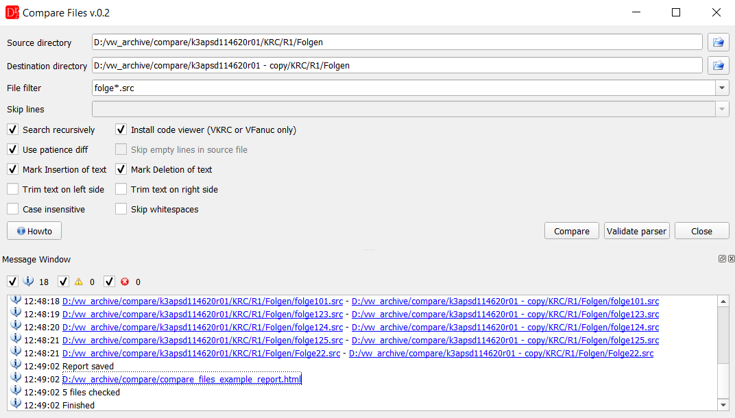 The Validate parser is used to compare files from robot archive after saving them in the editor.